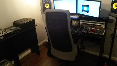 A couple of new additions to the studio tonight. First up is the Glorious Mixstation desk. Very easy to put up, good old flat pack style thingy. Nice width, managed to get my printer on there in addition to my decks and mixer. Now out of the kitchen which is sure to please the missus.